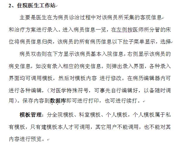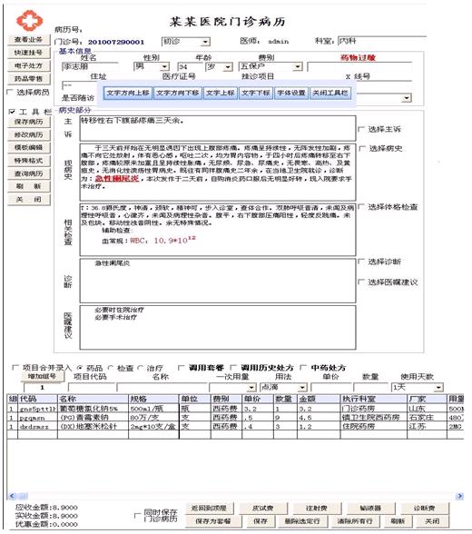 病史信息錄入(可實現(xiàn)病歷項目自行增減、模板的建立與調(diào)用、錄入醫(yī)師實時簽名、快速插入醫(yī)學特殊格式、修改痕跡的同步記錄等)
