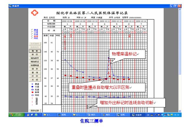 2、界面直觀:信息錄入界面直觀。如體溫單信息錄入,就是一張真正的體溫表,只需點一下即可錄入記錄。