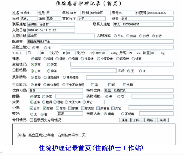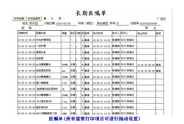 體溫單/醫(yī)囑錄入/醫(yī)囑查詢/作廢醫(yī)囑查詢/床位使用一覽/危重護理記錄
