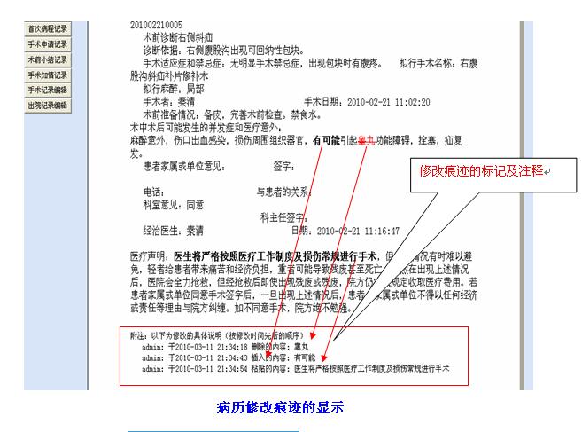 病歷修改保留修改痕跡(刪除,增加,復制等),個性簽名設置,
