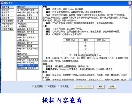 分為:全院/科室/個人模板,個人只有建立模板本人才能調(diào)用,其它用戶不能調(diào)用,也不能預覽模板內(nèi)容。